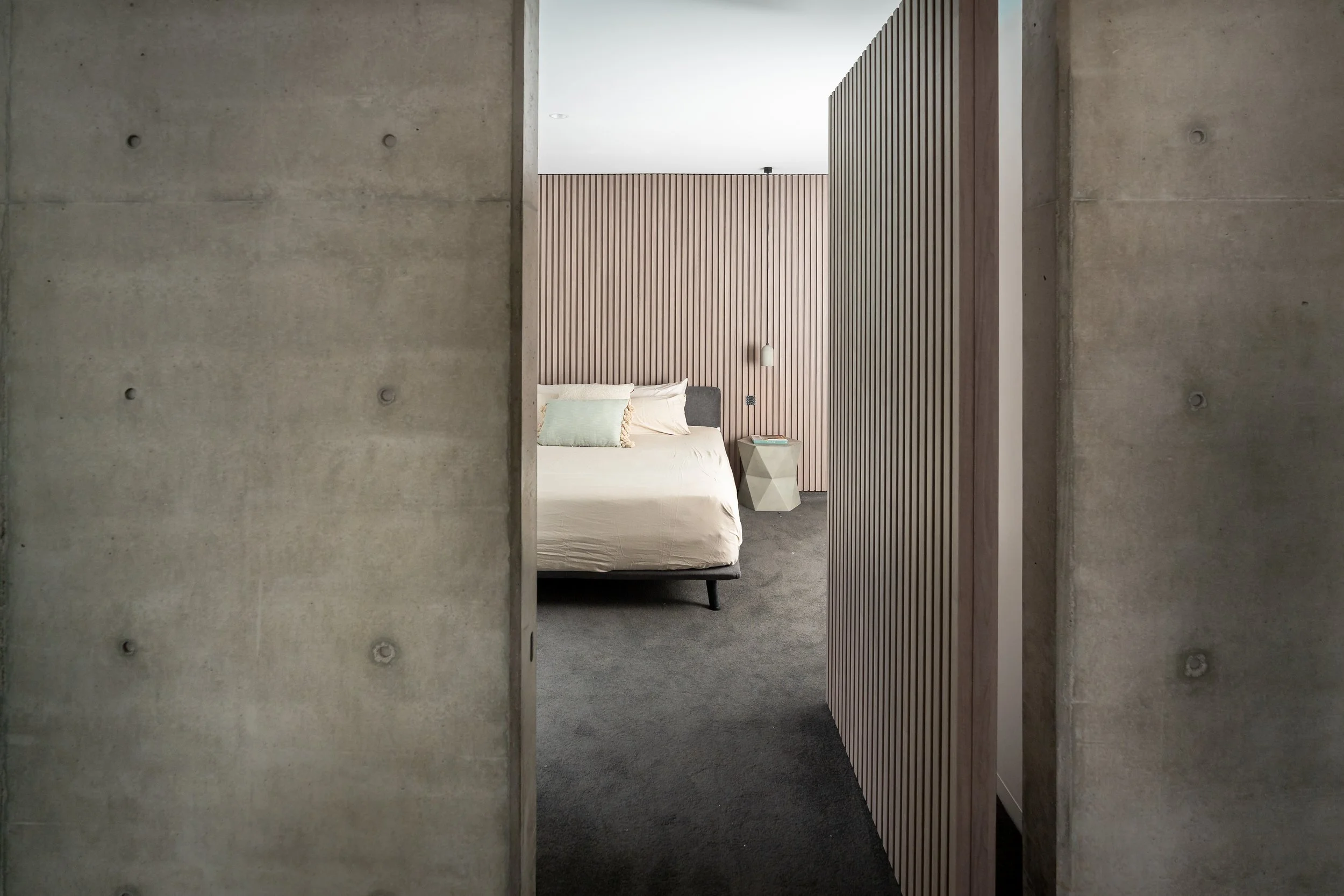 Our design celebrates a cohesive natural material palette that flows seamlessly between inside and out, blurring the line between architecture and landscape. Warm, tactile finishes connect the home to its natural surrounds, ensuring every space feels anchored to its setting and invites a constant dialogue with the outdoors